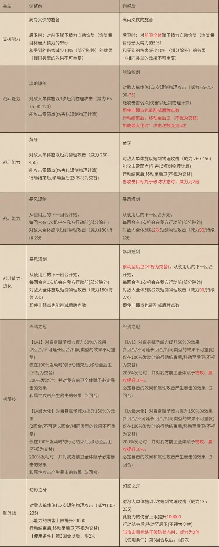 8、角色调整:对本期追忆的旅人“游侠艾丽卡”进行了性能调整,详情如下:
