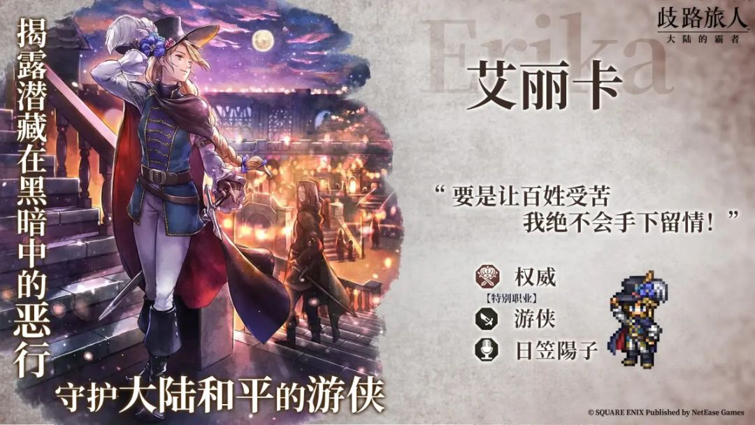 4、新增限时阶梯引导:“追忆的旅人”6★游侠“艾丽卡”,阶段5必定获得1个5★及以上旅人,50%的概率获得6★游侠“艾丽卡”,阶梯引导中可获得导片(游侠艾丽卡/猎人迪特蕾娜)、追忆旅人的导片。
