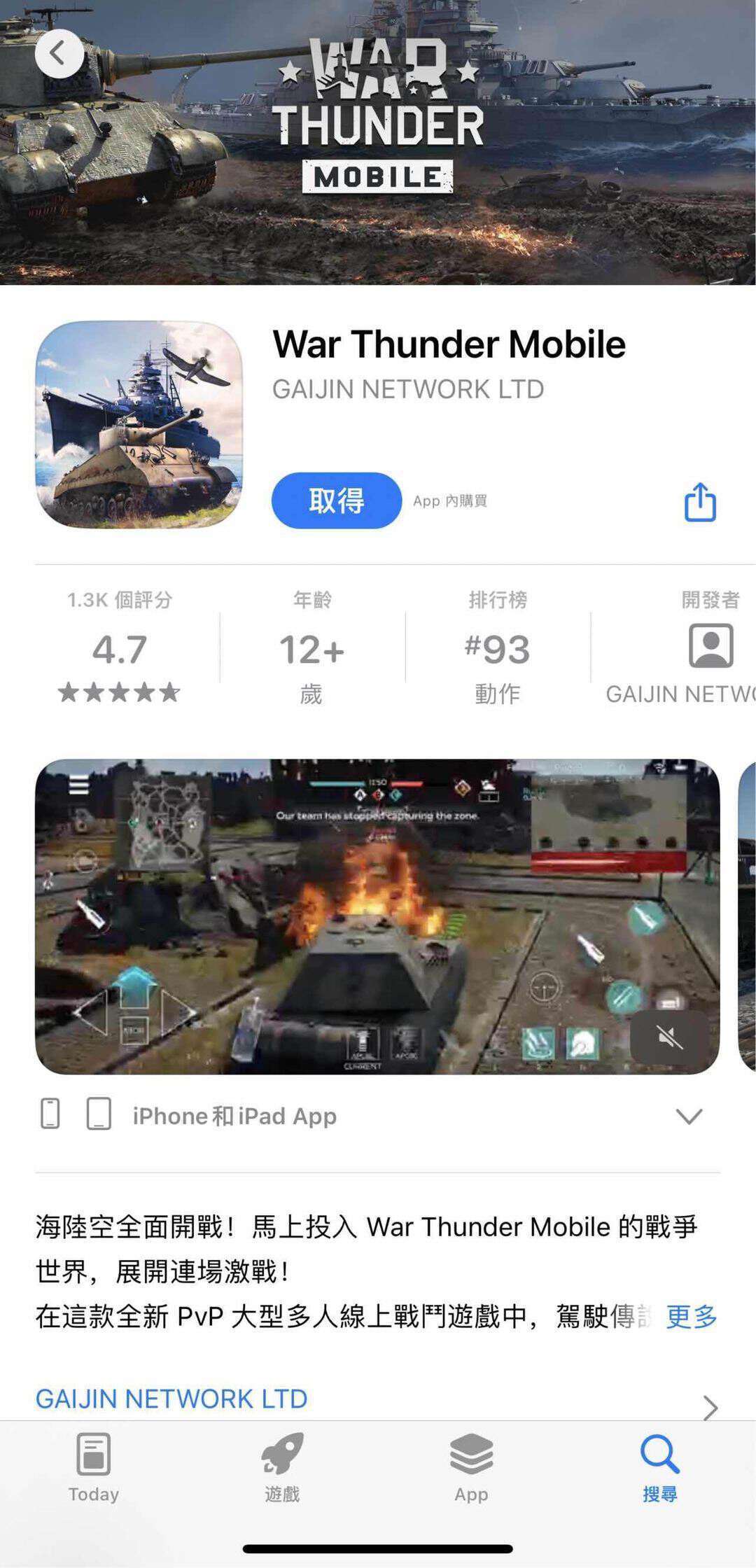 第三步:登录外区商店后,搜索【战争雷霆】或者【War Thunder Mobile】即可下载游戏哦!