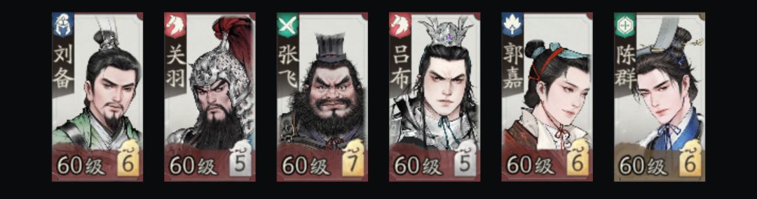 刘备、关羽、张飞、吕布、郭嘉、陈群