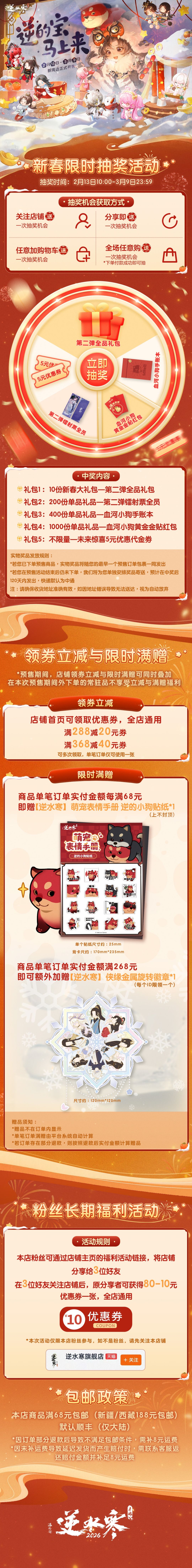 新春佳节,逆水寒旗舰店当然也要为大家准备好《薅羊毛攻略》,请看下图!
