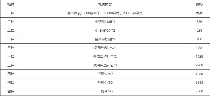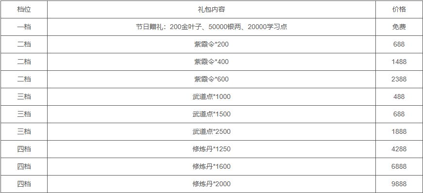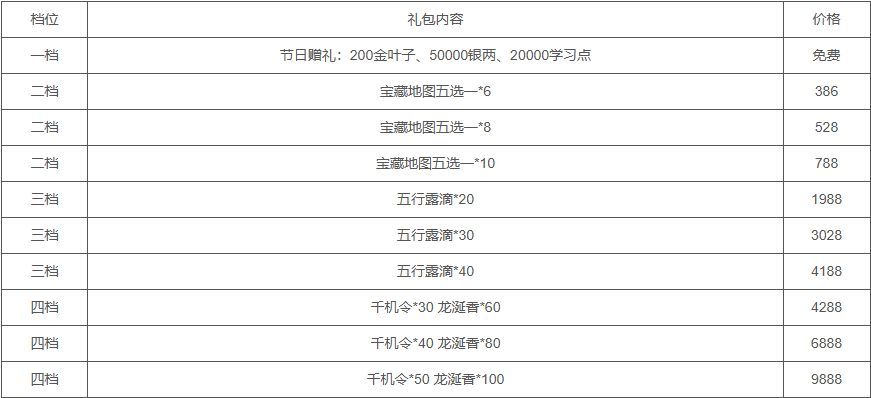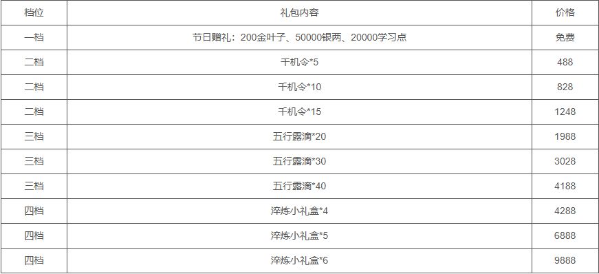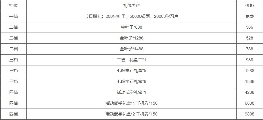 活动一:活动期间将限时上架节日礼包,礼包内容如下: