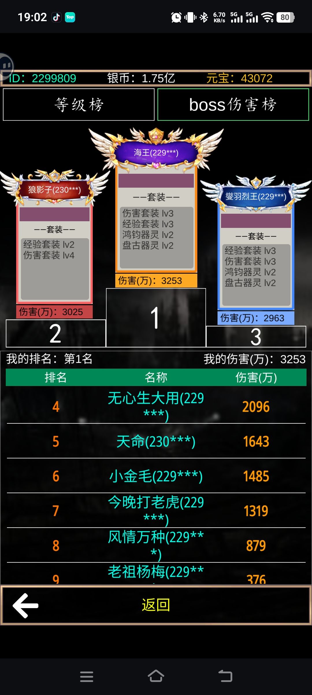 现在我打的250级妖王,他打的200级