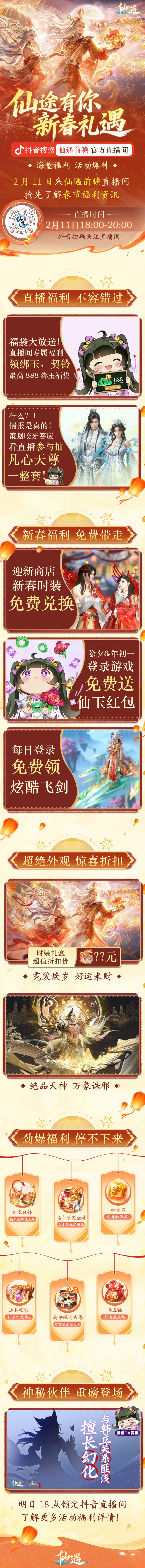 2月11日,锁定抖音 “仙遇前瞻”官方直播间,小师妹带着一大波福利+爆料等您光临!
