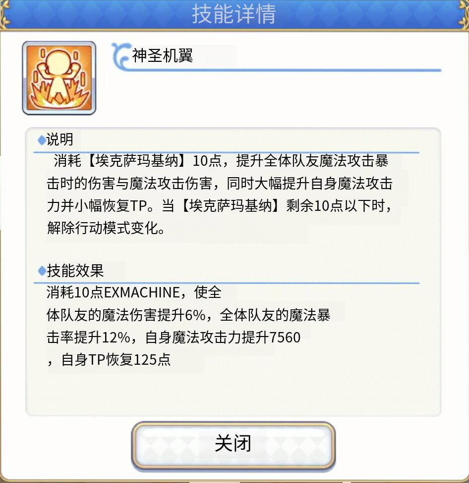 变身后:扣10层特殊buff,自身加攻+全体魔伤+全体魔法爆伤 +125tp