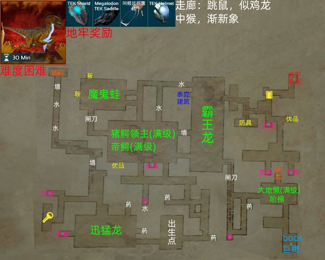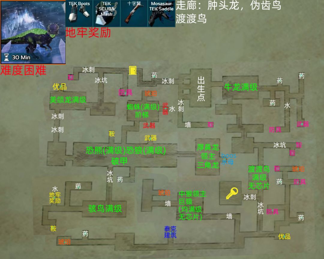这五张是我自己做的,另外10张还在制作中,没标注的都不是满级龙,地牢奖励和图纸有颜色区分的紫色代表这是精良宝箱,黄色代表史诗宝箱,红色代表传说宝箱,对于残酷来说没啥区别,困难我不知道,他们三的出传说的几率都不一样,出传说还和左上角的地牢难度挂钩,困难难度比中等更加容易出传说图纸,残酷的玩家就无需在意了基本上随便一模就是一个传说图纸,还有地图有错误欢迎大家指出我看见了会及时修正的。