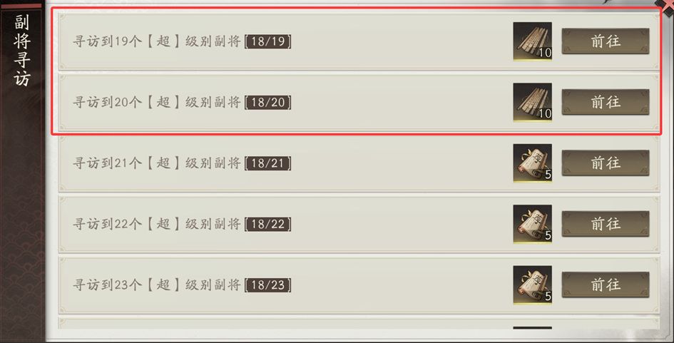 寻访成功后,可消耗征召令继续征召该副将部众,以达成副将升迁。