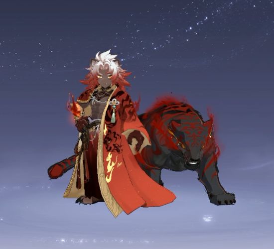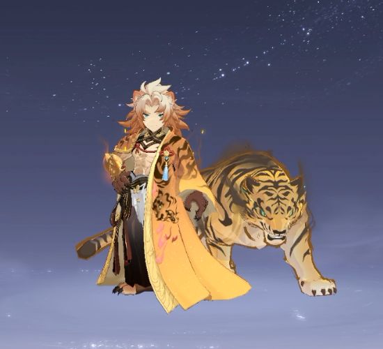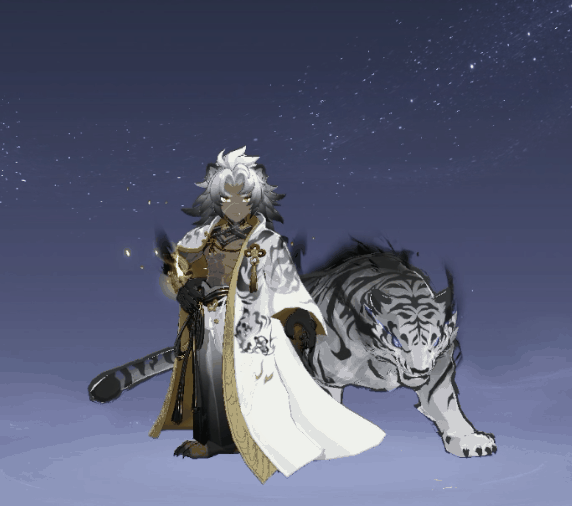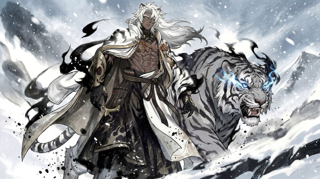 新神兽【白虎】是人虎共生的形态,人与虎的气息彼此交融,冷峻的眼神里,满是对来犯之敌的睥睨与不屑。
