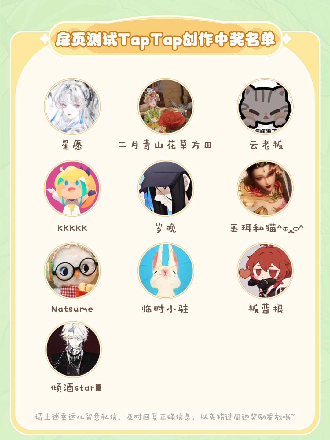 💌恭喜以上10位小伙伴获得第一批周边礼包奖励!感谢你们在首测期间用心记录、分享美好!