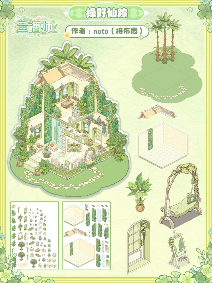 「绿野仙踪」:藤蔓缠绕的绿色双层小屋,仿佛闻到雨后森林的苔藓味——设计来源 @noto(接布局)