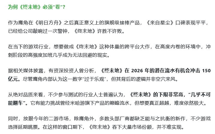 知名媒体预测称终末地首年流水有望破150亿