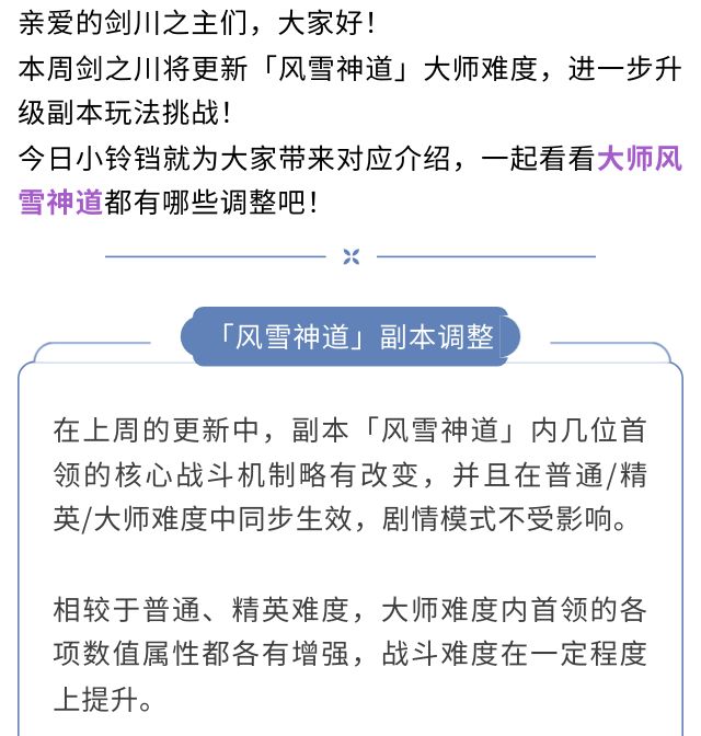 副本更新 |「风雪神道」大师难度上线,副本机制调整!