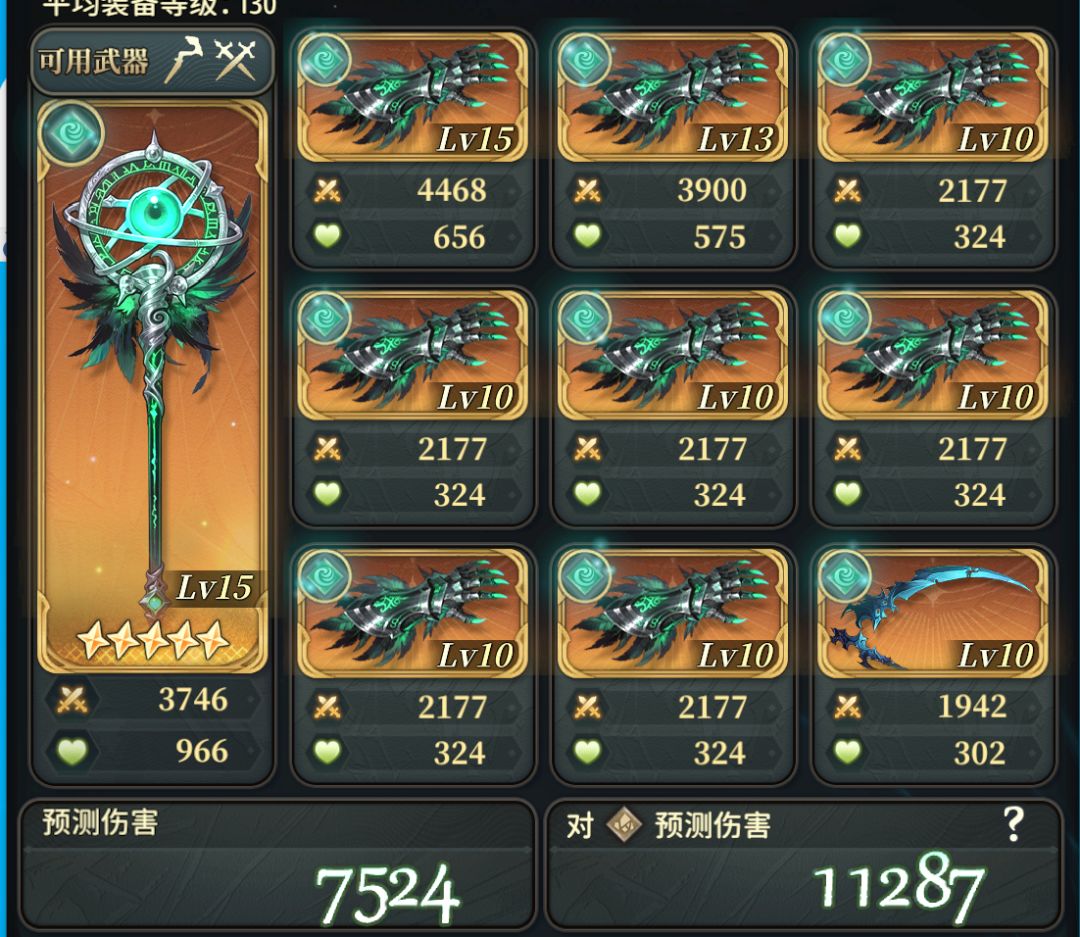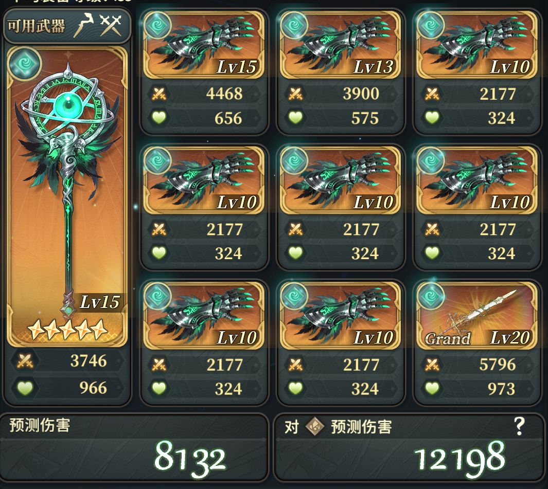 4奥义斧+2奥义枪,3连击斧+3连击枪即可应对大部分情况。