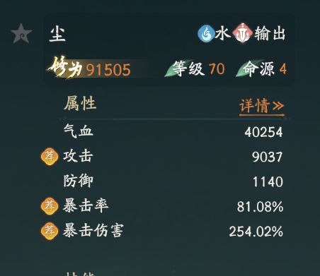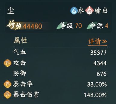 经过新版本提升后,初始暴率33%,爆伤148%,让尘进入直伤队列。