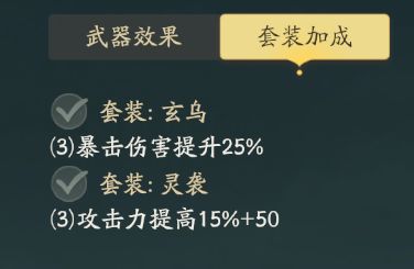 3玄乌+3灵犀的搭配,加成爆伤与攻击,有暴率项链,面板数据非常优秀,缺点是没有特殊套装效果,但依然是我认为的当前版本最合适的选择。