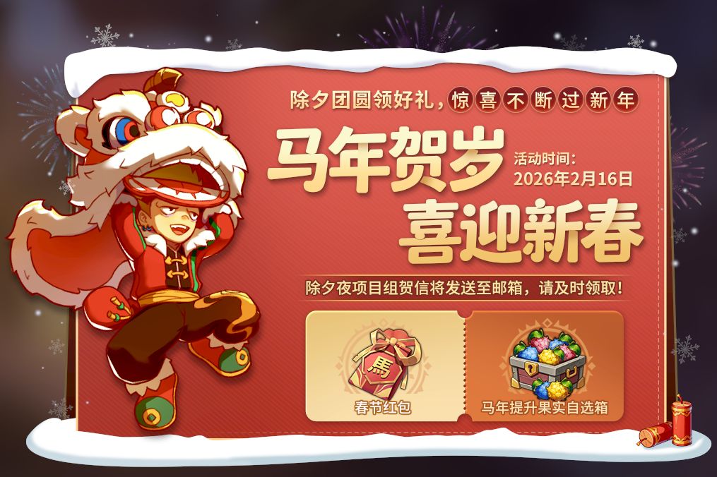 内含暖心春联祝福,更有【抽奖红包】+【马年提升果实自选箱】双份好礼~