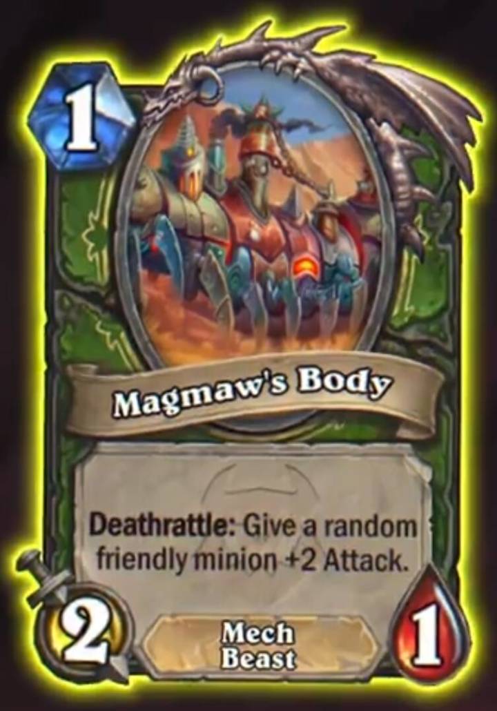 巨型衍生物,亡语:随机使一个友方随从获得+2攻击力。
