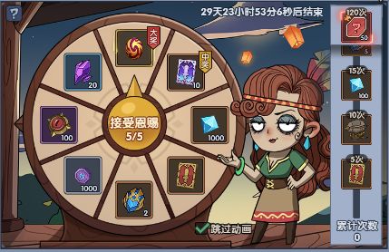 活动期间每天转动恩赐转盘可获得超值奖励,累积恩赐次数后更可收获阶段丰厚奖励!