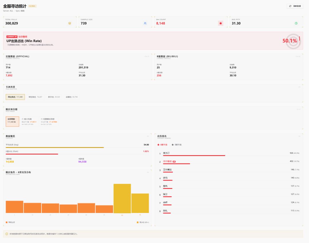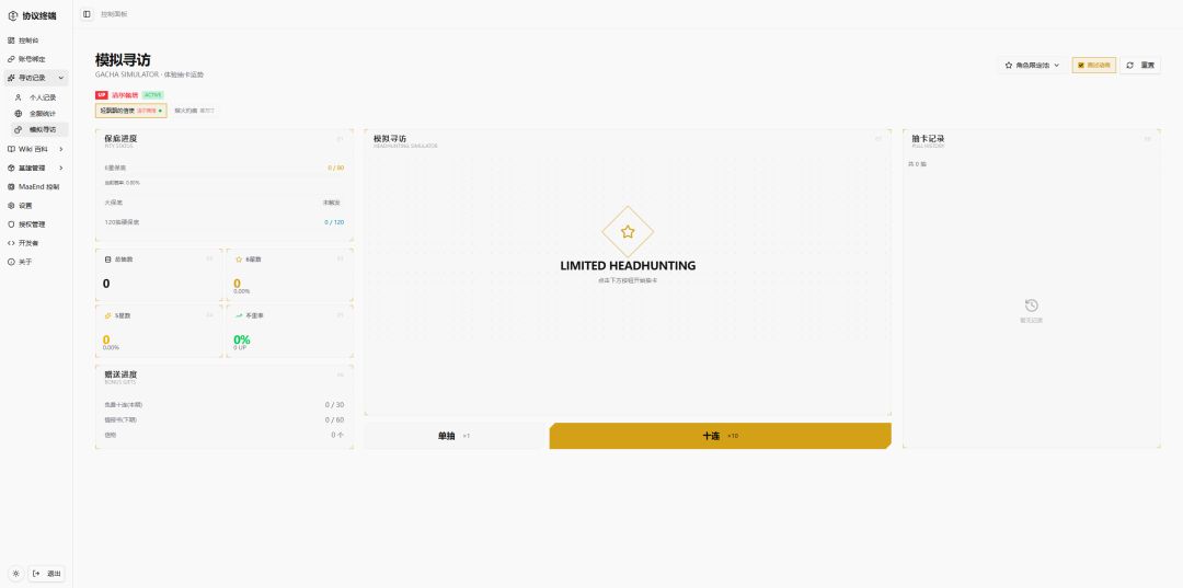 还在手动计算保底吗?协议终端为你自动汇总全服与个人抽卡数据。