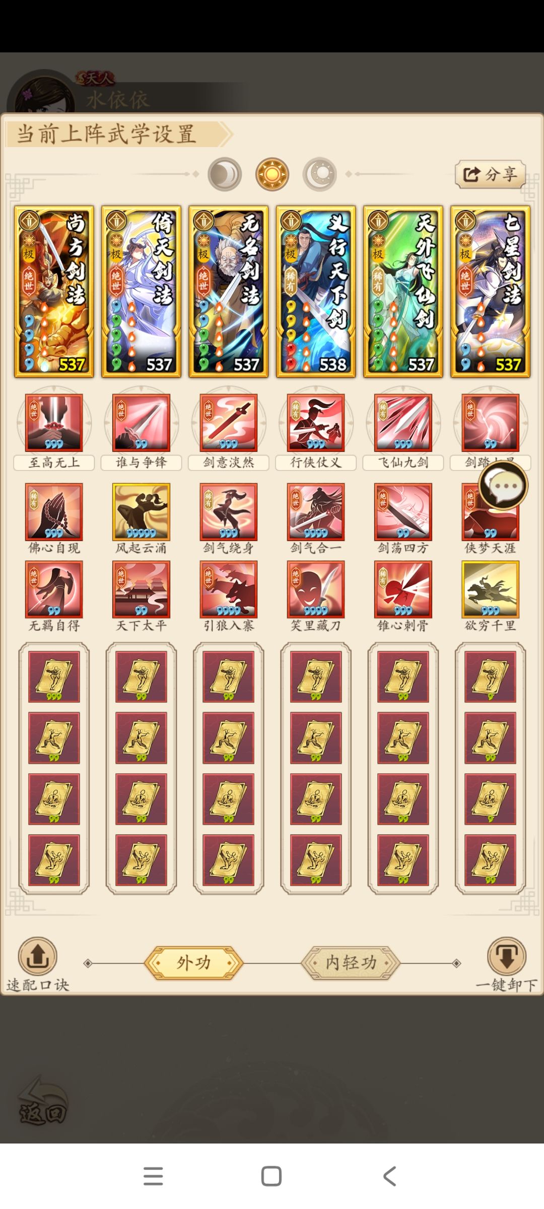 犹豫了很久,还是决定发一下帖子,这游戏是前年底的金蛇区,到现在一年一个月了,月卡少了五个月,也就是到现在充的不到300,刚开始也不太会,但是因为喜欢玩剑又不想玩大众的调和剑,所以当时选了阳剑(之前是真的很弱),之前学生党不太想充钱,很喜欢研究配招,我战力几乎算我们区垫底,算是唯一阳剑,华山本服战力基本上所有人都比我高,但是不高太多也有一战之力,初期不太会玩养成有点问题,后面稍微好一点了,这游戏氪是真的,但是如果保持双卡,还是有机会能打氪了几千的,差不多能和高我50级内的有不低胜率,目前在用的两套阵容(我们区环境的)其他区可能不适用,也不算是大佬,但是觉得自己对阳剑配招还是略有研究,对于微氪越战来说可以交流,因为阳剑玩的人确实少,强度也不算很高,所以还是想能更多帮到一些新手,第一次发帖实在是懒,没说太详细,欢迎各位交流(最后说一句,无问剑居然算一个负面能被清,真的招笑)