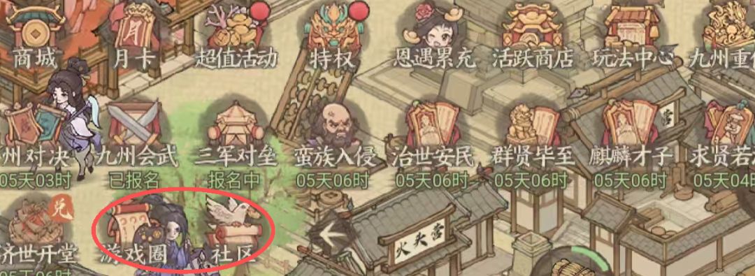 点击上图中的前往就可以进入游戏圈界面了,我们重点关注一下画圈的这两排,先说说第二排