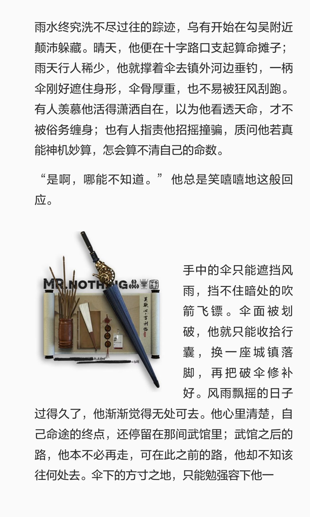 武器是一把伞一把扇还有一张嘴,也许还有别的。