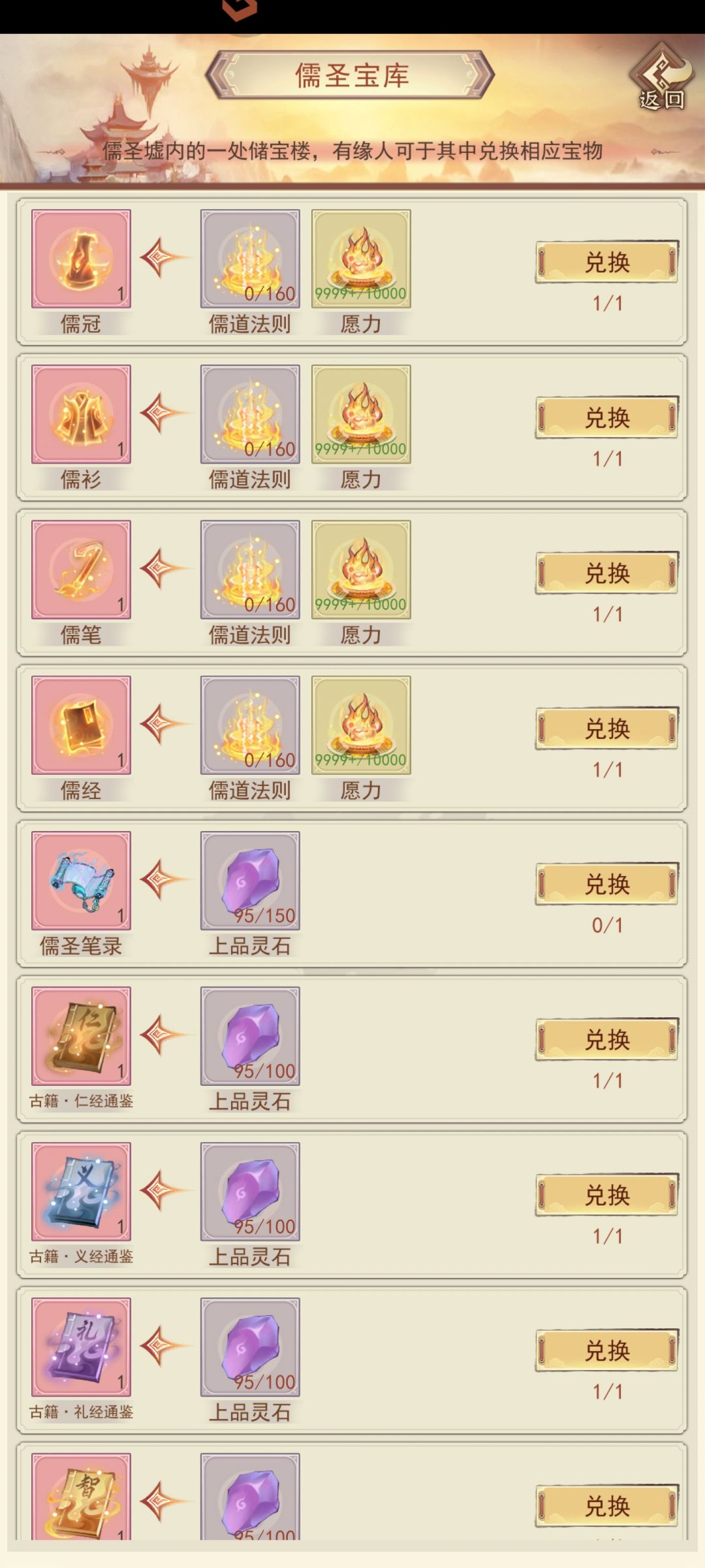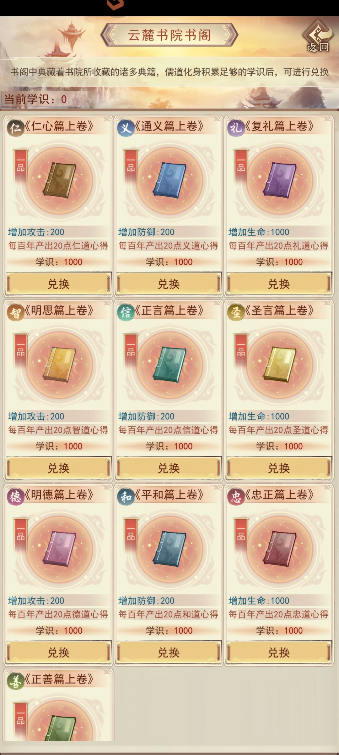 典籍的收集影响到儒道属性的提升和儒道等级提升的速度