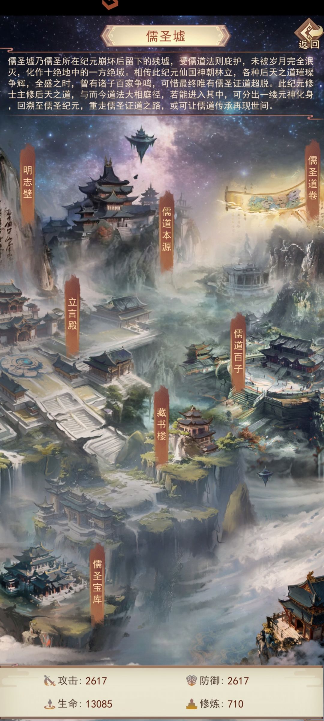 儒道品级达到三品立言境后方可进入,儒道立言境以后可以通过书院书舍获得儒道真解,通过真解在立言殿参悟儒道真言。