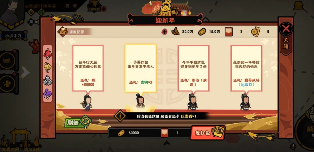 以上就是本期新年活动爆料的全部内容,全新演义,全新惊喜,王上们记得来演义中‘发红包’哦!新年伊始,万象更新。愿各位王上策马驰骋,纵横山河,2月13日中午12:00,红包封面第三弹和全新摆件登场,王上们记得来哦!