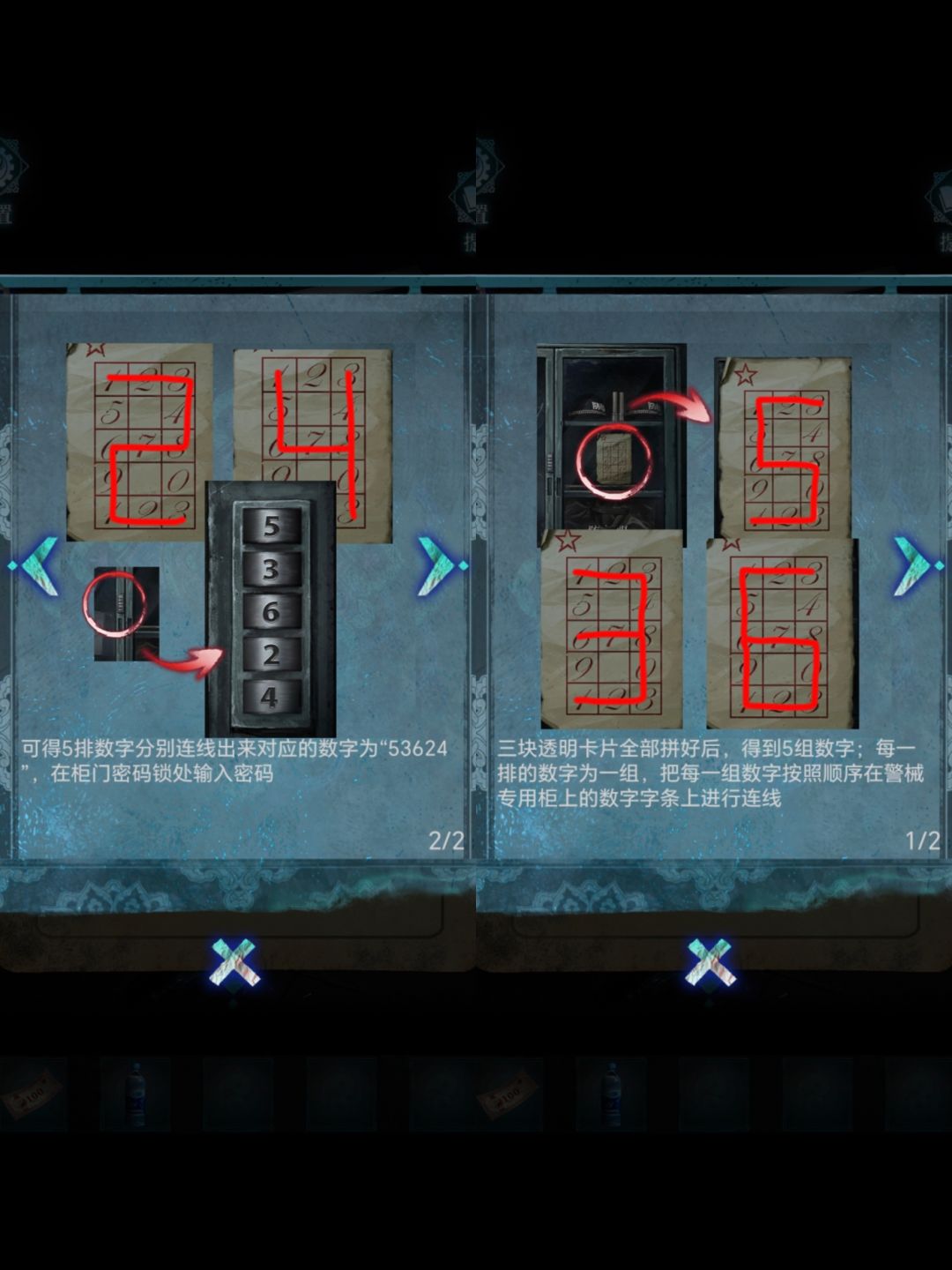 6。来到下图获得一个【透明卡片】(截止此处,已有两块。),去到便利店内部,点击有饮料的冰柜,获得【矿泉水】,把开锁工具放进去,顺序为【1321514】