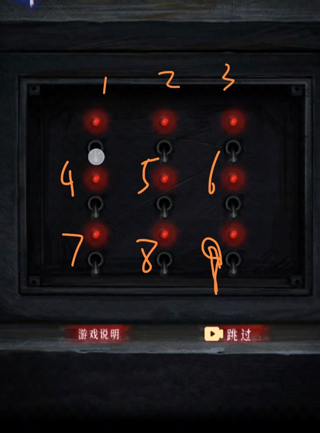 箱子里获得【透明卡片3】(截止此处已有三张)和【三角符纸】,用【符水】融化最后一间厕所的符纸。回到男厕所外部,把三块透明板放上去,联系一下。