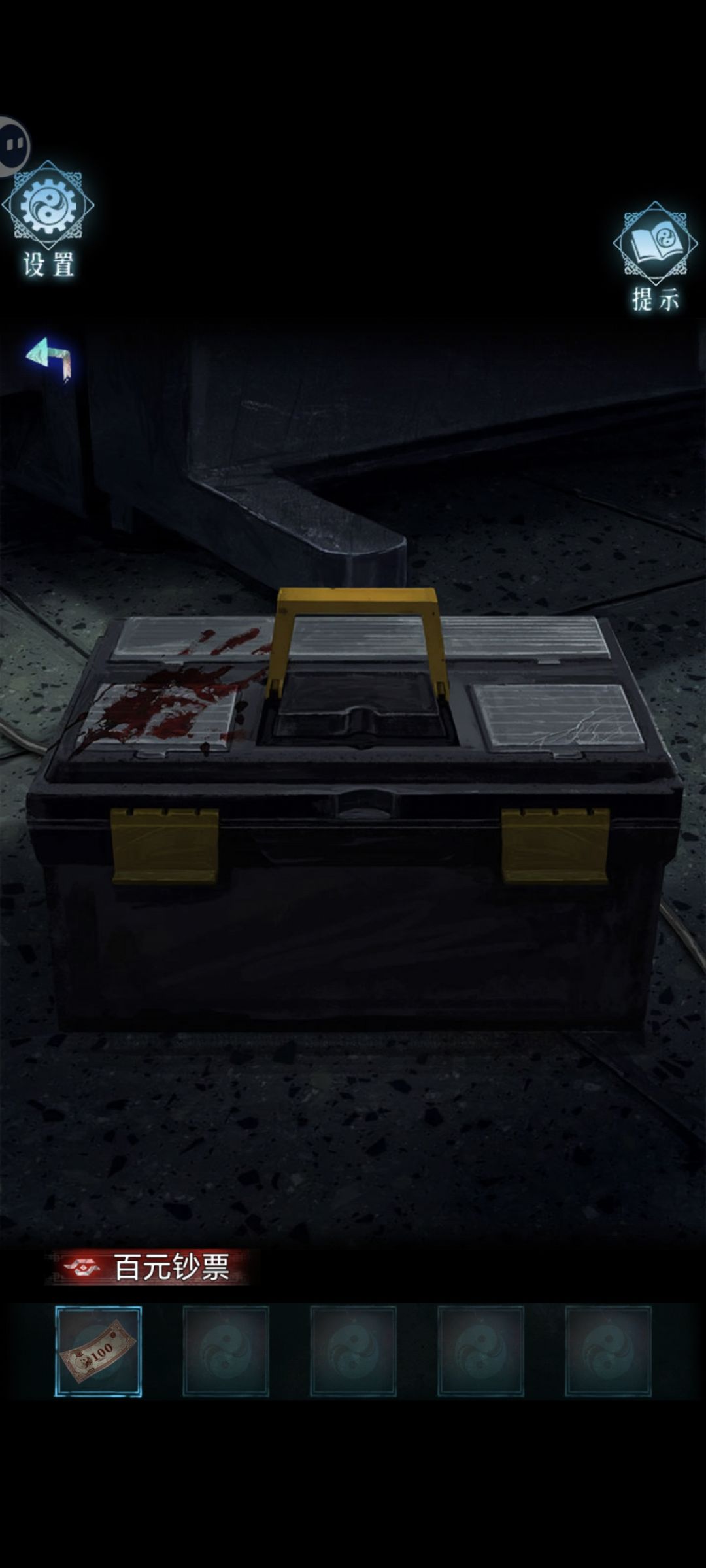 4。回到厕所外部,用【清洁剂】喷镜子,用【抹布】放到水龙头下打湿再去擦,出现七个绿色的掌印。忘截了,注意左右手顺序,是【左右左右右右左】,后面有用的,这个是开下面这个箱子的顺序。箱子里获得【探测仪】和【螺丝刀】