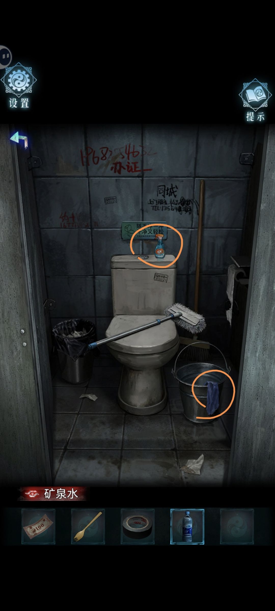 3。去最中间的厕所,获得【清洁剂】加【抹布】