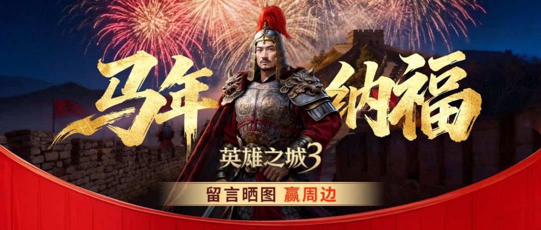 城主大人们,春节即将来临!值此团圆纳福之际,《英雄之城 3》给大家送新春福利啦~ 无需复杂操作,留言送祝福 + 晒游戏截图,就能参与抽奖,定制折扇、主题鼠标垫直接抱回家,祝各位城主新岁马到成功,福气满满!