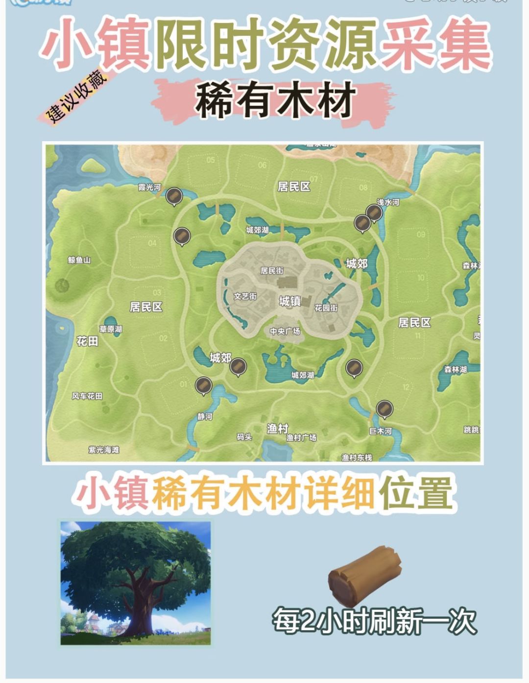 - 稀有木材每2小时刷新,建议定闹钟循环采集;