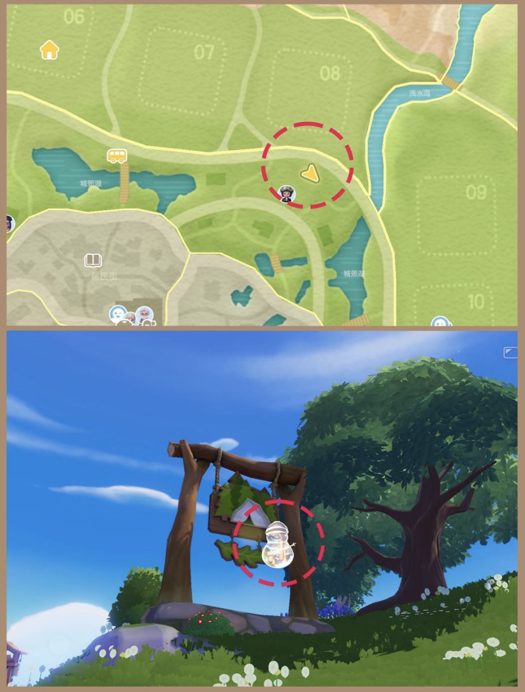 2. 粉色泡泡:全岛共15个(温泉山至渔村沿海区域),触碰掉落家具/满愿星,路线参考图3。