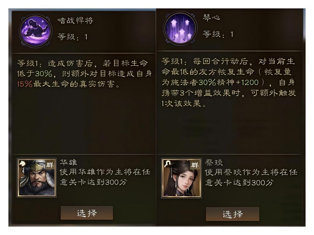 1.蔡文姬,奶妈在这个副本里有先天优势(徐庶除外),技能选择连击暴击和加法术伤害的,站BOSS旁边露头就秒,解锁很轻松,专属技能“琴心”,全局通用回复。