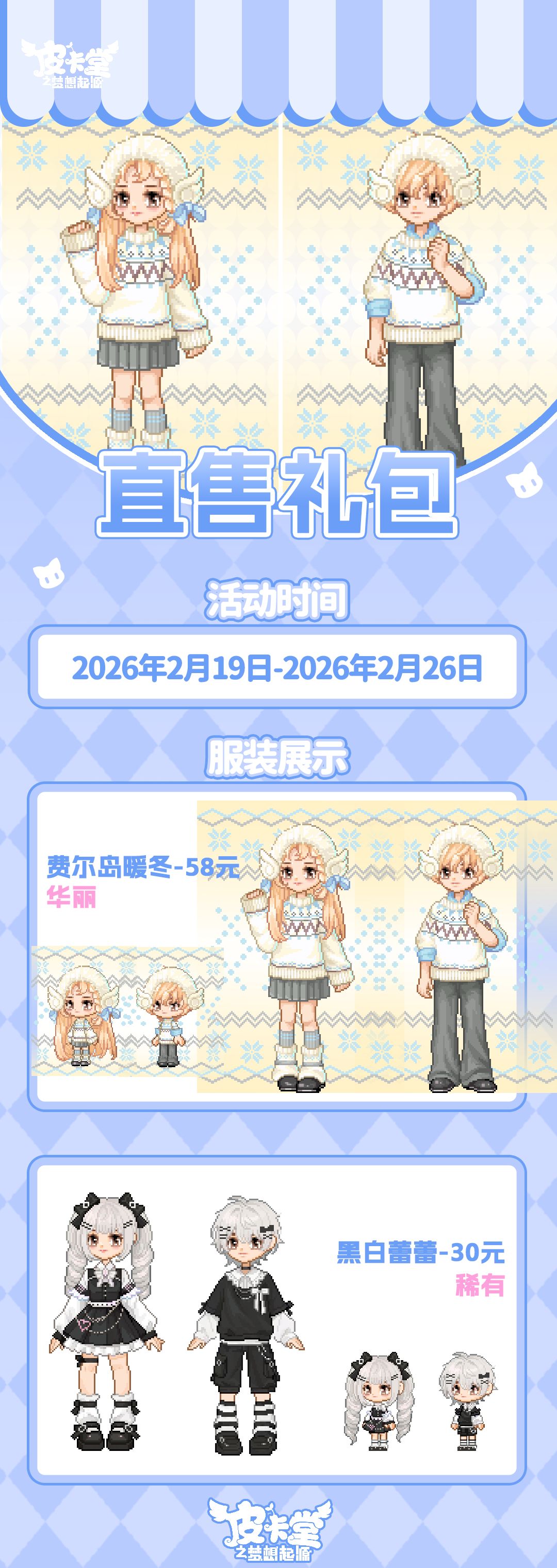 -【直售礼包】全新华丽套装「费尔岛暖冬」、稀有套装「黑白蕾蕾」上线!