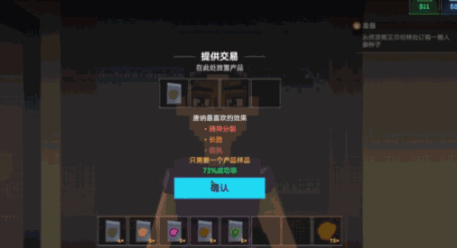 在该版本中,部分产品词条被赋予了独特的效果。当你与顾客交易后,他可能会试吃你提供的产品,根据产品上附加的特殊词条,或许他们会有着神奇的变化……当然,这些神奇的效果不会一直存在,正如老话所说:“睡一觉就好了”。