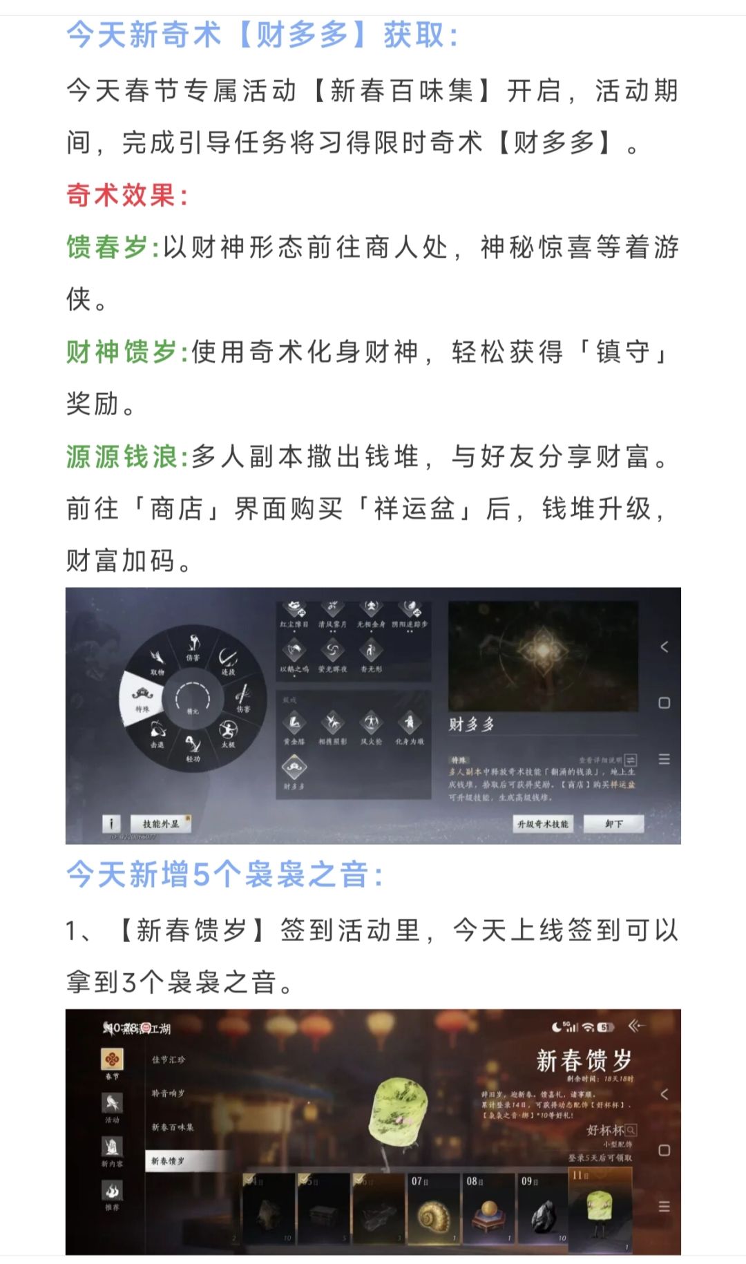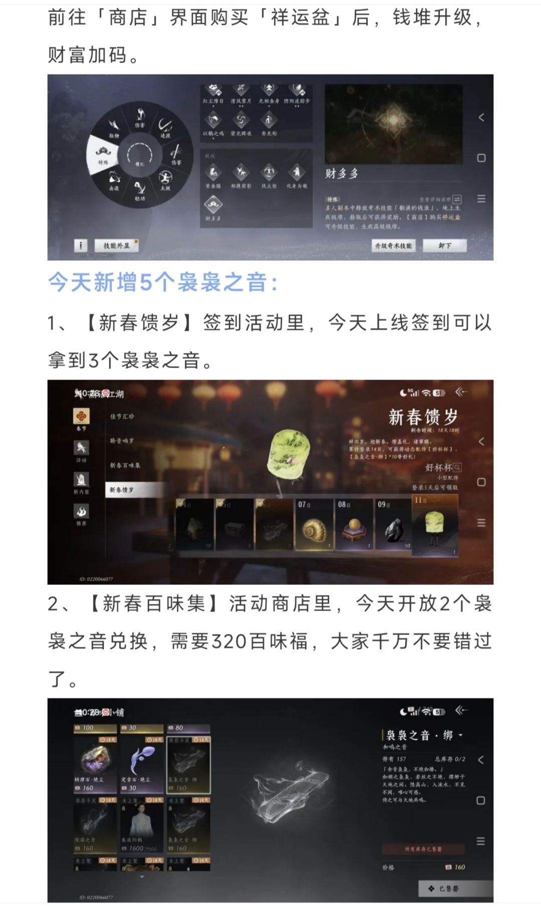 燕云十六声今天新增5个袅袅之音,本周五258块新时装,新和鸣武器外观,新奇术【财多多】获取,新时装【马上有乾】!