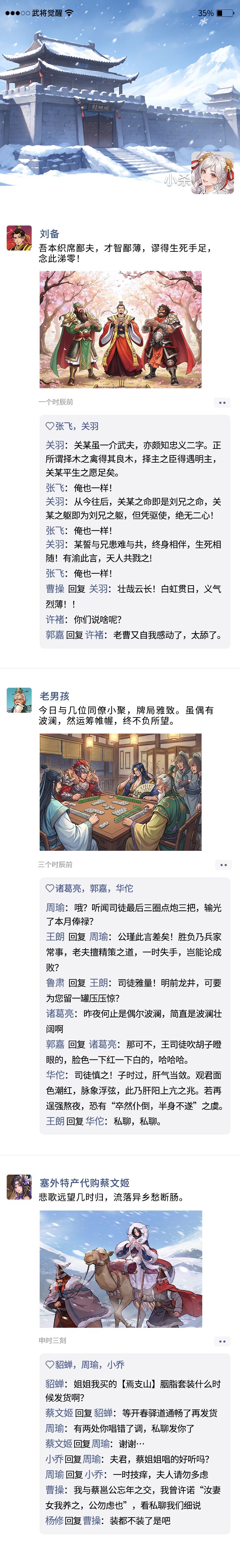 小杀又截图了武将们的朋友圈,主公们快来一起吃瓜看热闹啦~