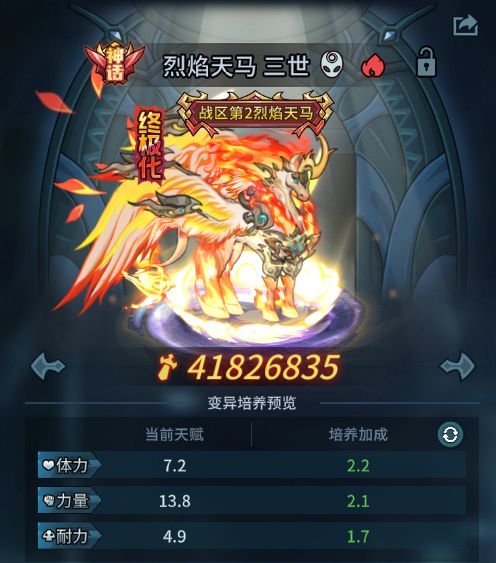 可通过消耗契约兽精华和巨心对契约兽进行变异培养,可以增加契约兽的天赋点数