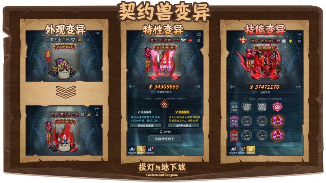 2、可对契约兽的通用技能、专属技能以及觉醒技能进行变异(五郎都不敢想,要是概率、层数、持续时间同时提高得有多厉害)