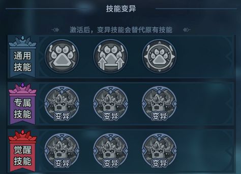 3、其中专属技能和觉醒技能变异激活后会替代原来的技能效果