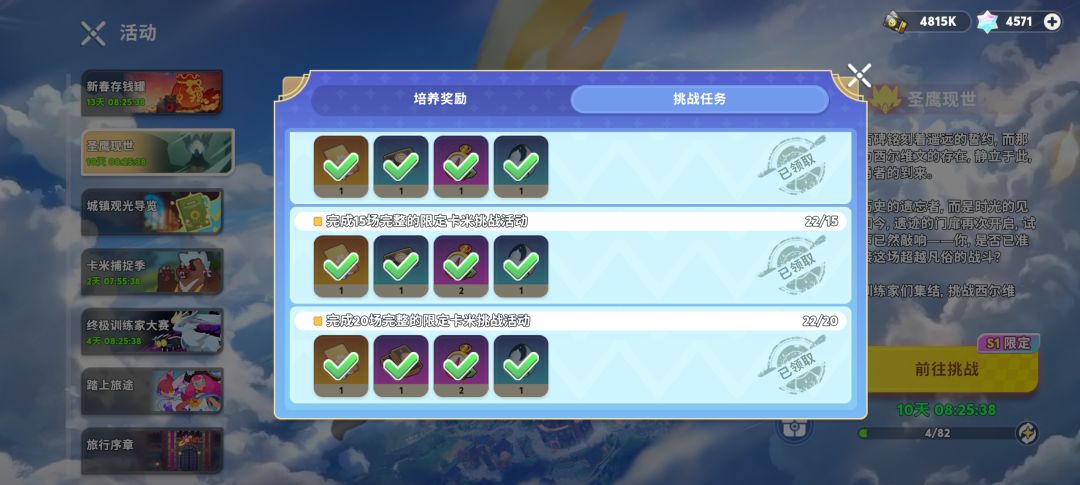 然后零氪党的我们是可以白嫖1到3只鹰的,我们进限定副本里面单人匹配让人机带我们打20次,可以领取四张限定卡米卡,然后就可以白嫖鹰啦,后面平民建队拿他当天气手是很不错的