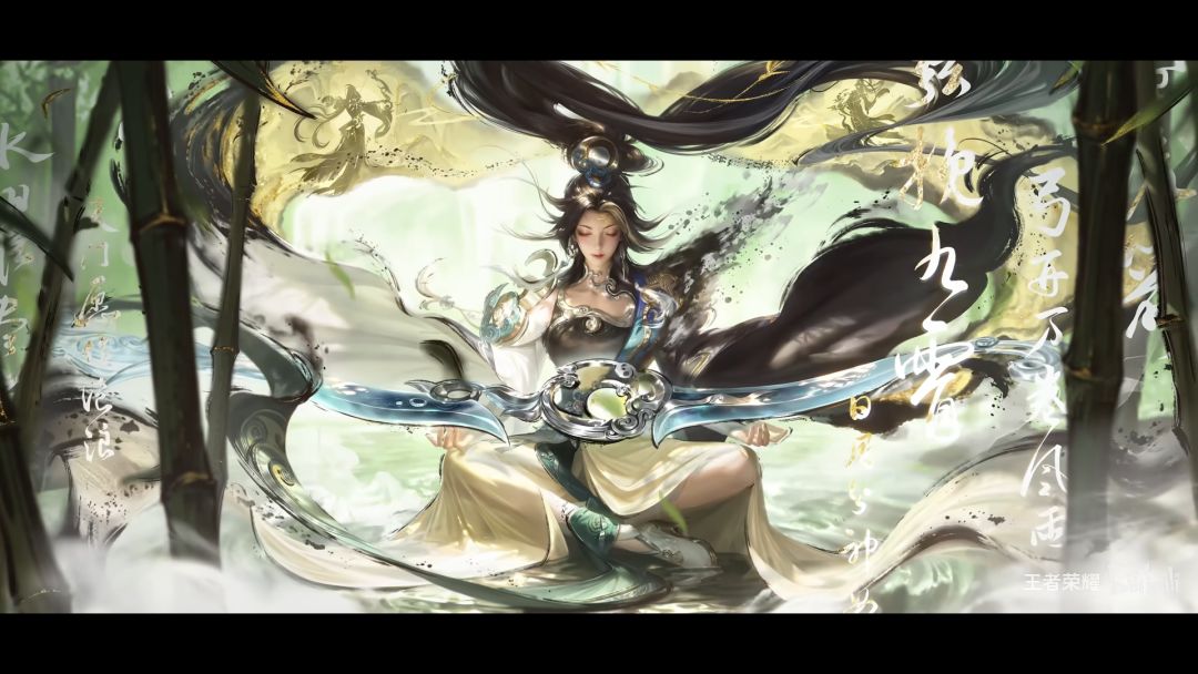 法阵铺展,竹林掩映,流水潺潺,潭水中神女画像浮现。圆月渐升化为骄阳,四周天地亦随之流转变幻,宛如一幅正在徐徐展开的时序长卷。一、三技能同时释放时,法阵内更有硕大竹影显现,随风而动。