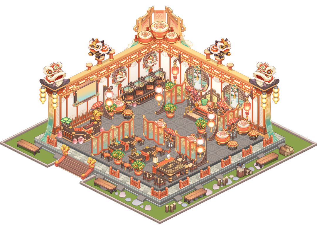 限定新春主题场景、首款店员新春皮肤登场!新年新装,共添喜庆色彩。