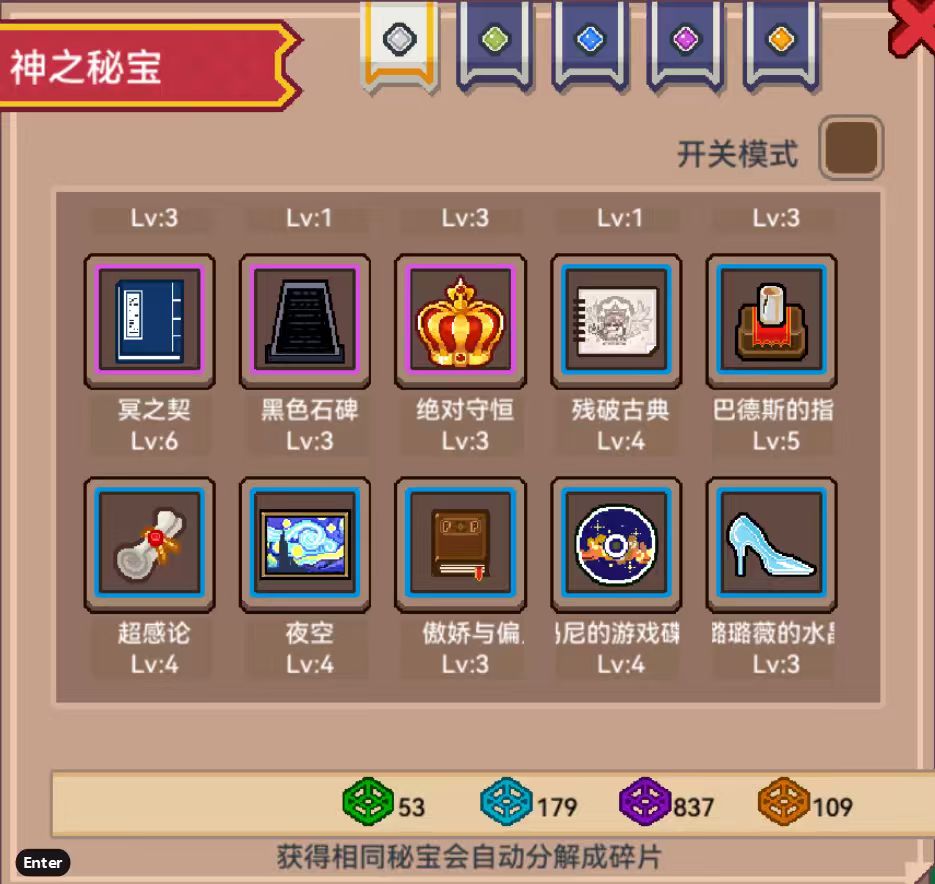 今天做完了堕落方舟那个分解金装的任务,弄了一些钻石把财富神宝库抽完了,然后升了三级星河,还保底了一个外罗