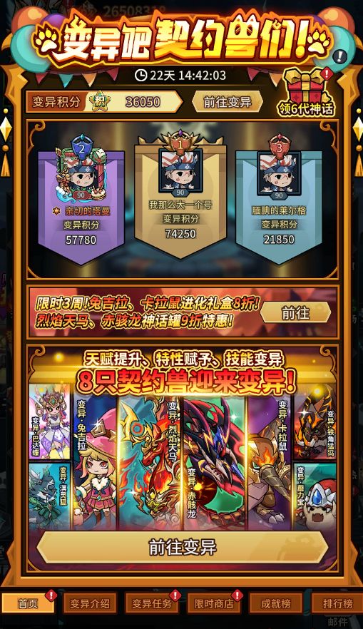 3、活动期间对契约兽进行变异培养可获得积分,积分进行排名