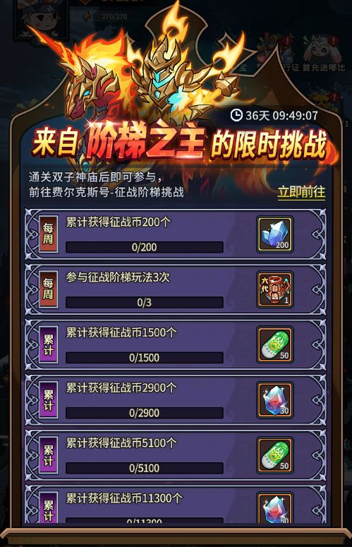 活动期间可通过挑战征战阶梯完成对应的挑战任务